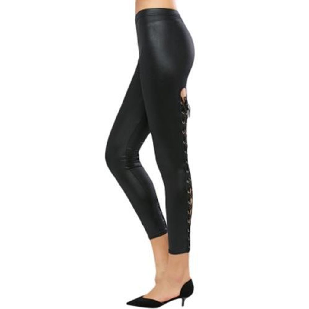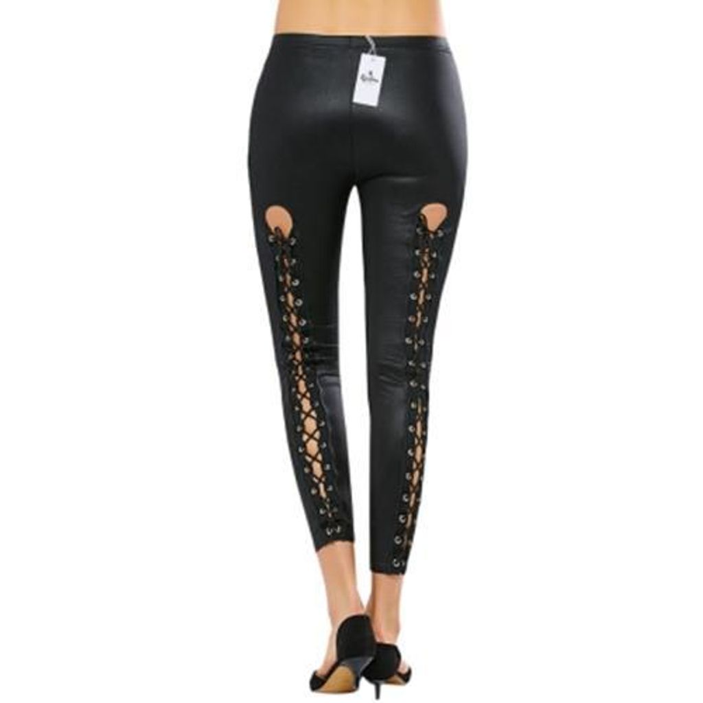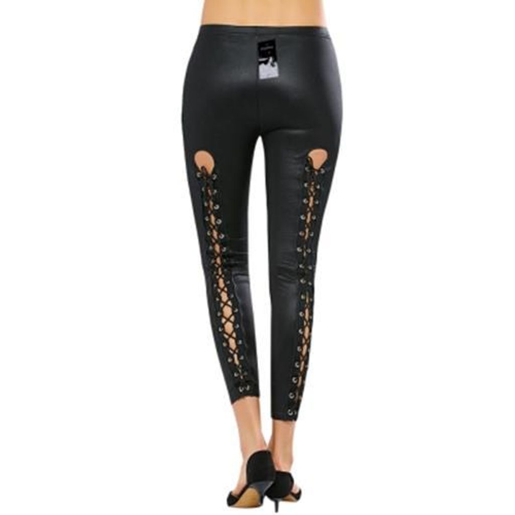 CRISS-CROSS PU LEATHER LEGGINGS (BLACK)