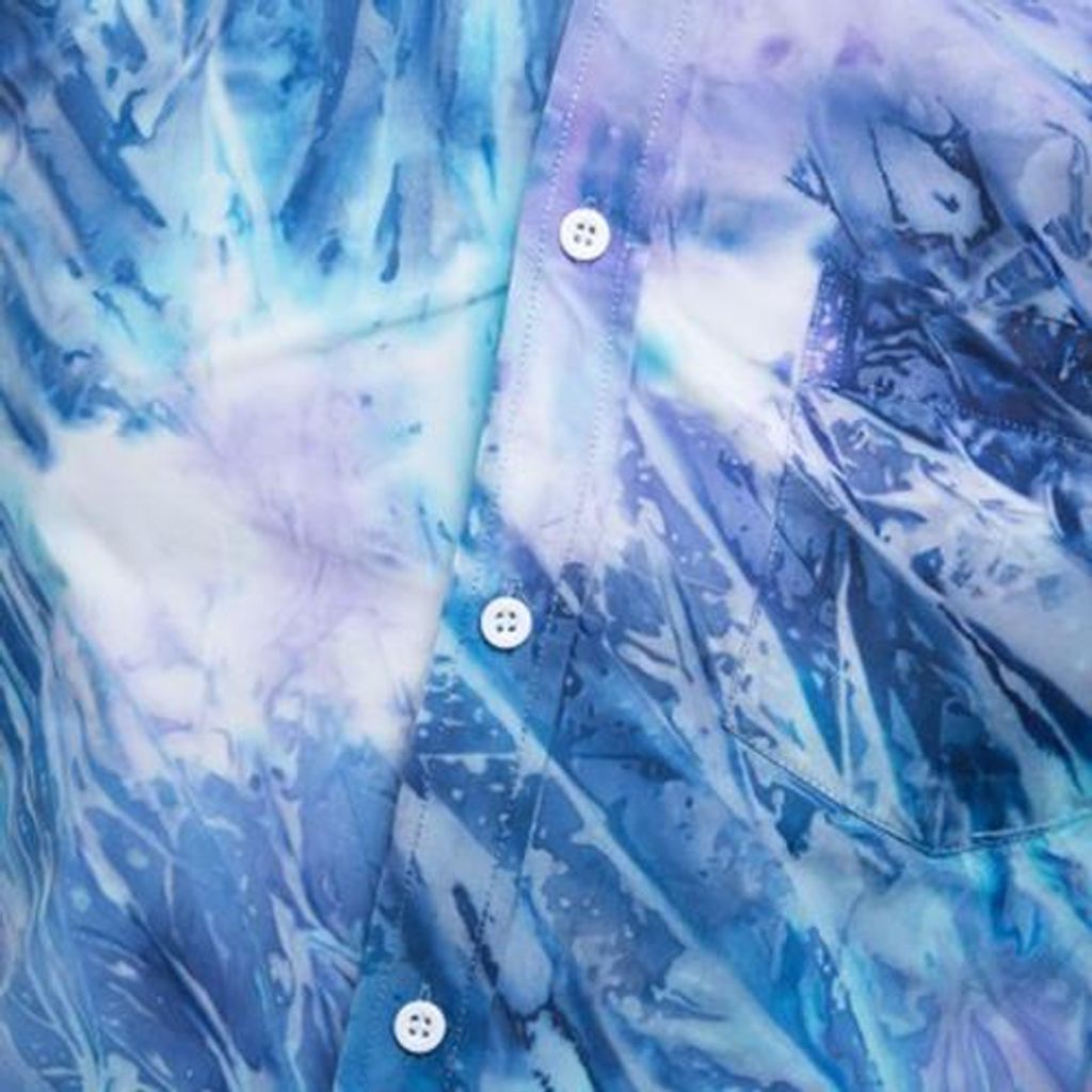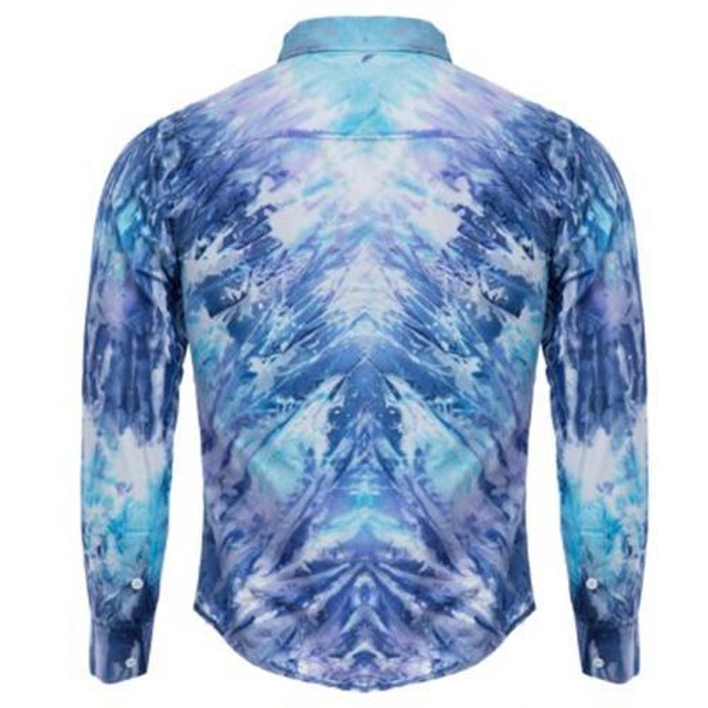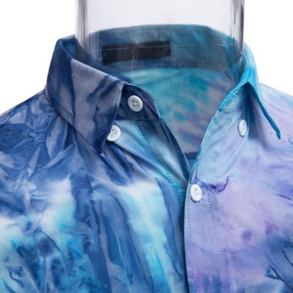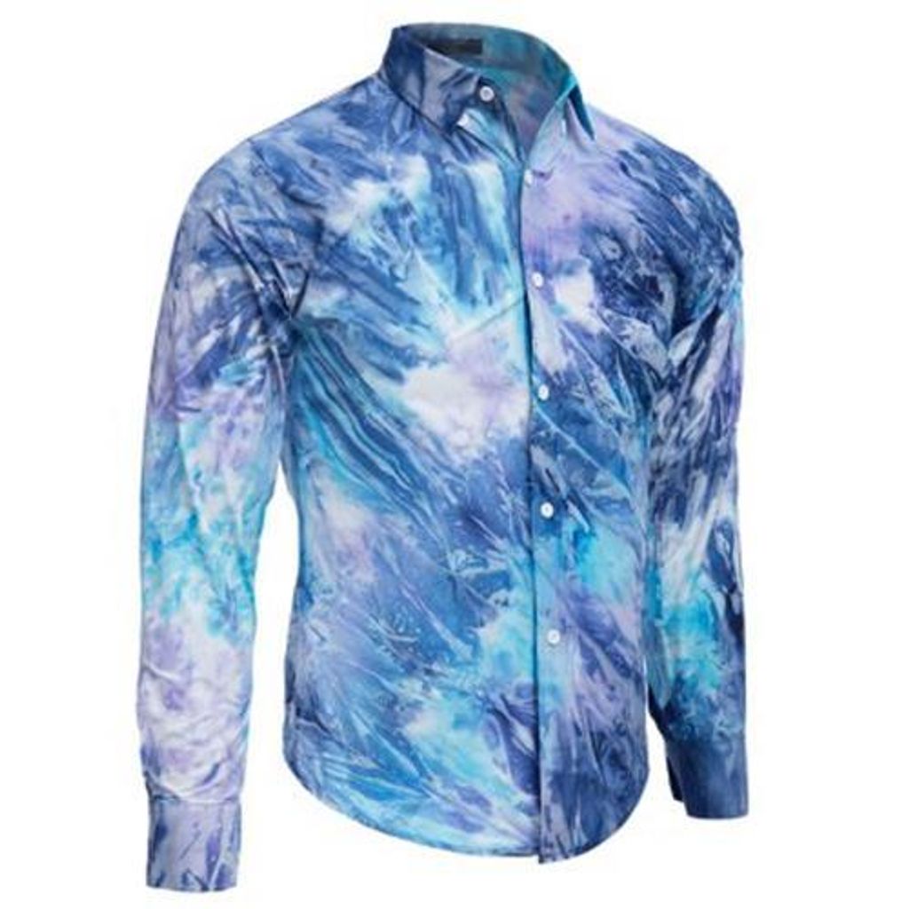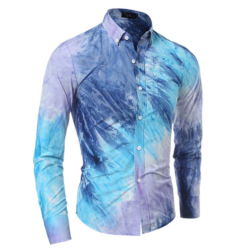MALE TIE-DYE POCKET DESIGN SLIM FIT CASUAL LONG SLEEVE SHIRT (BLUE)