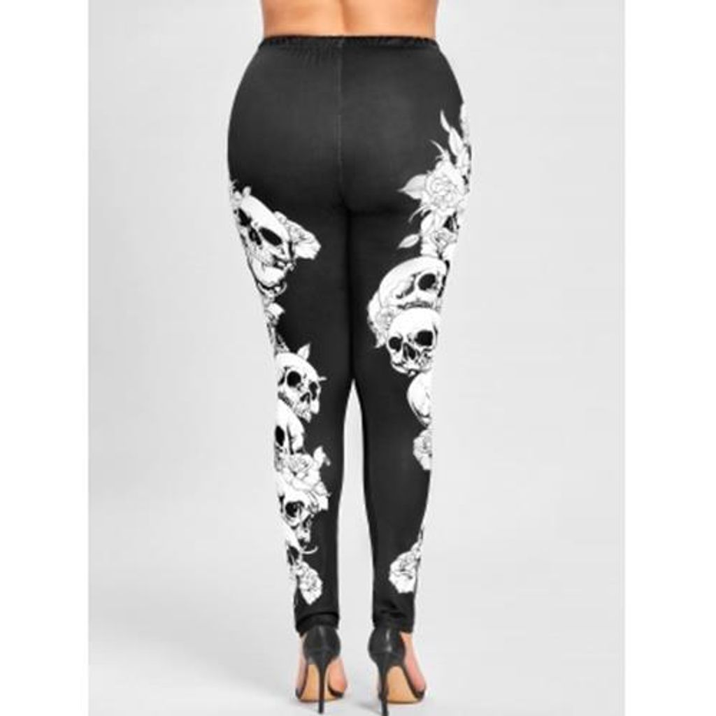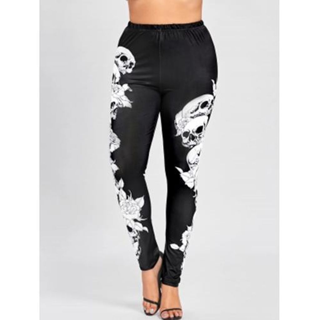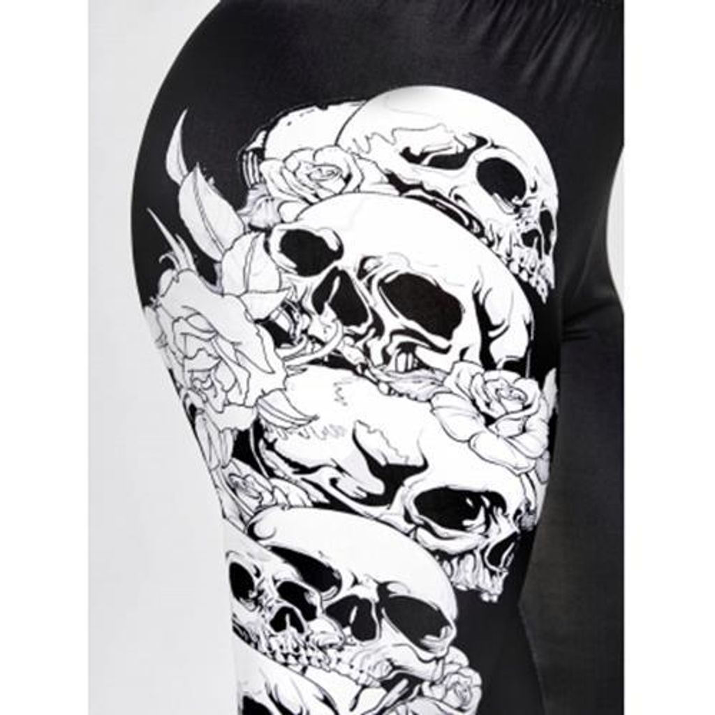 PLUS SIZE HALLOWEEN MONOCHROME SKULLS LEGGINGS (BLACK)