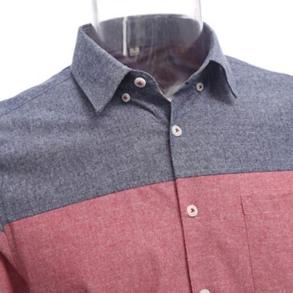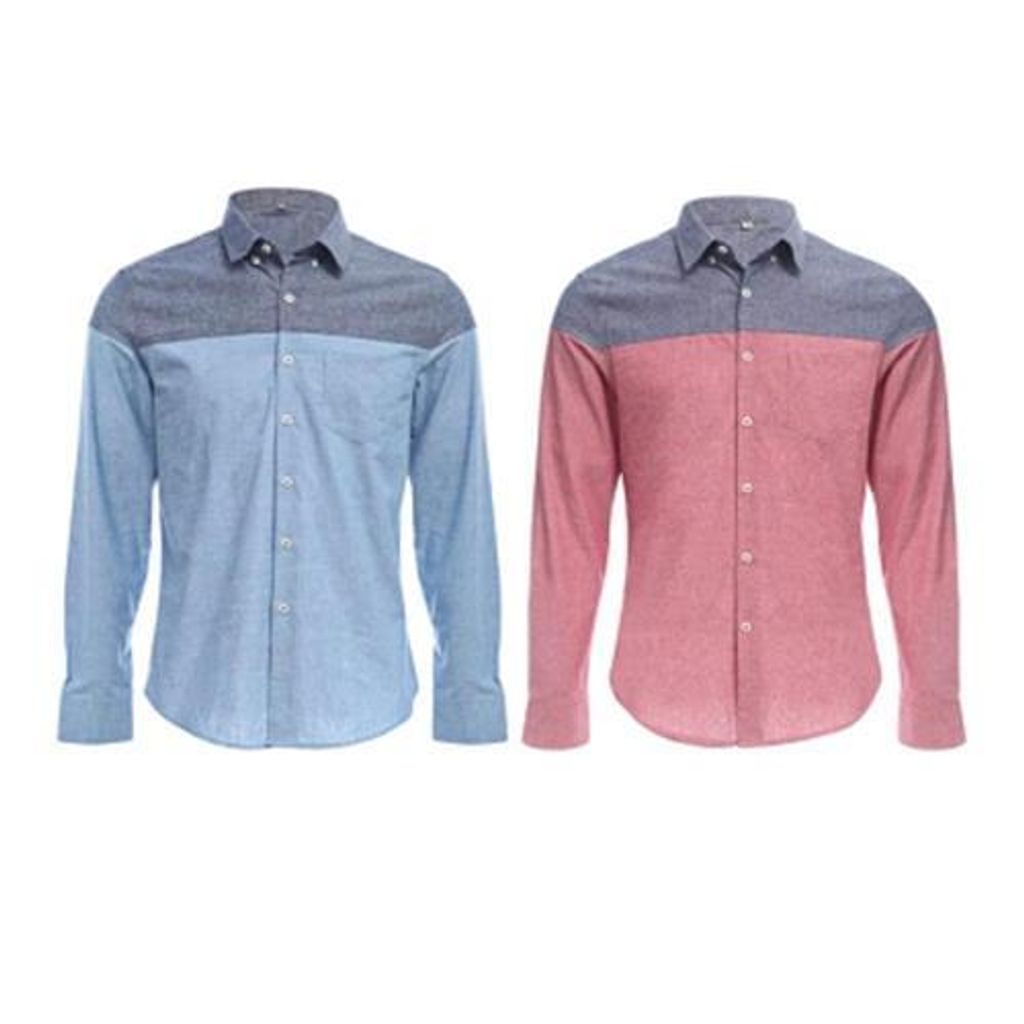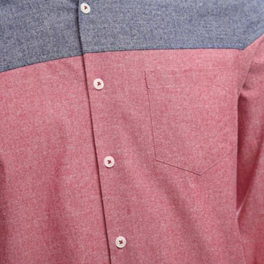 SLIM PATCHWORK BUTTON DESIGN MALE LONG SLEEVE CASUAL SHIRT (WATERMELON RED)